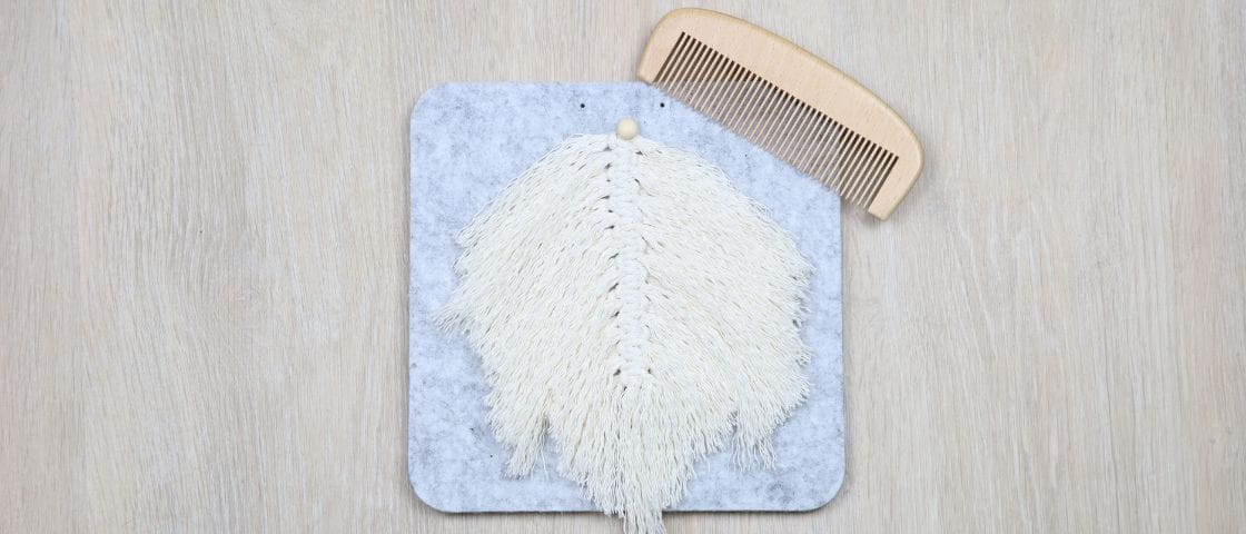 - Une fois votre feuille réalisée, peignez les franges de chaque côté pour dédoubler votre corde en coton. Allez-y progressivement de l’extérieur vers l’intérieur.