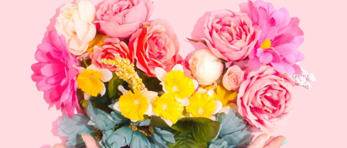 Pour changer du traditionnel bouquet, réalisez une composition florale en forme de cœur.